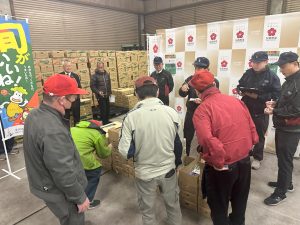 初せりではJA金沢市軟弱野菜部会 野白部会長、JA金沢市の南組合長よりPRが行われ、野白部会長からは、「夏場の猛暑で作付けに苦労したものの、出来は良い。」とあいさつがありました。